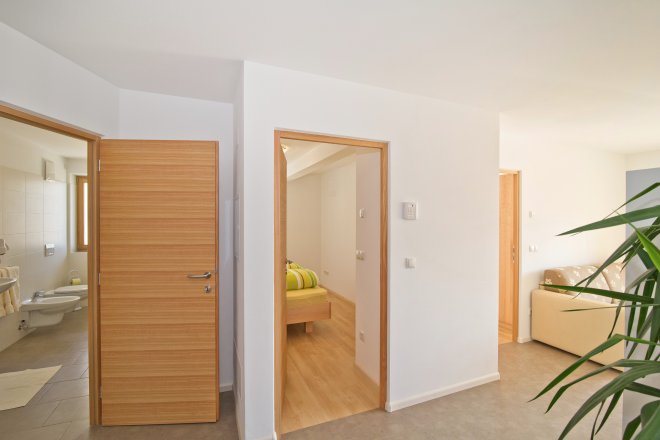 Das Appartement "Dolomitenblick" hat einen großen sonnigen Balkon und ist wie folgt ausgestattet: